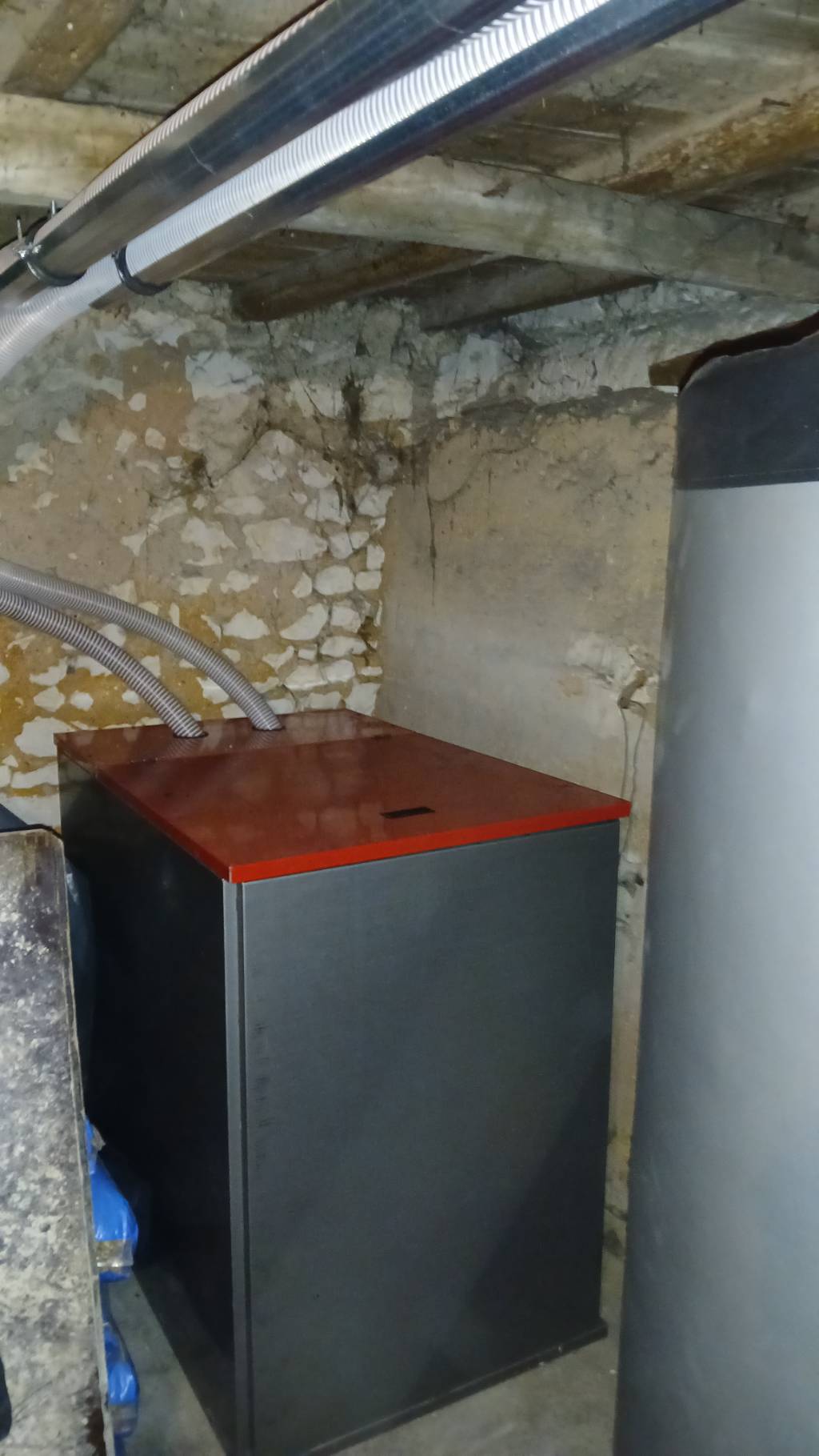 Le ballon tampon de 500 litres permettra un fonctionnement optimal de cette chaudière à granulés de bois.